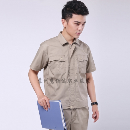 苏州鹰诺服装:米色拼黄色夏季工作服AD09-1