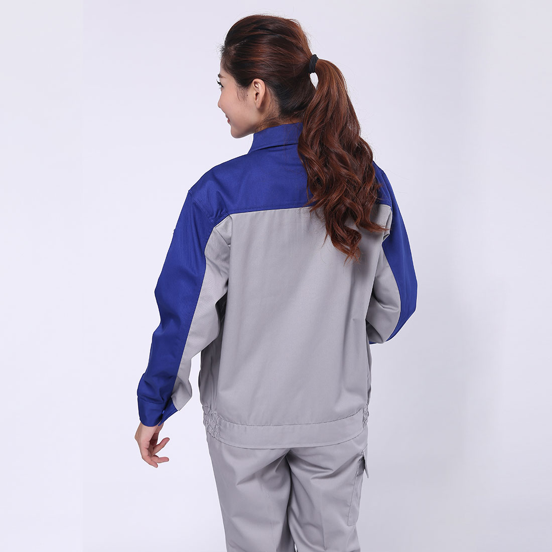 艳蓝配浅灰工作服AC072