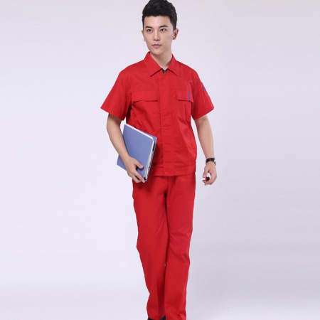 苏州鹰诺服装:红色拼藏青工作服AC13-2