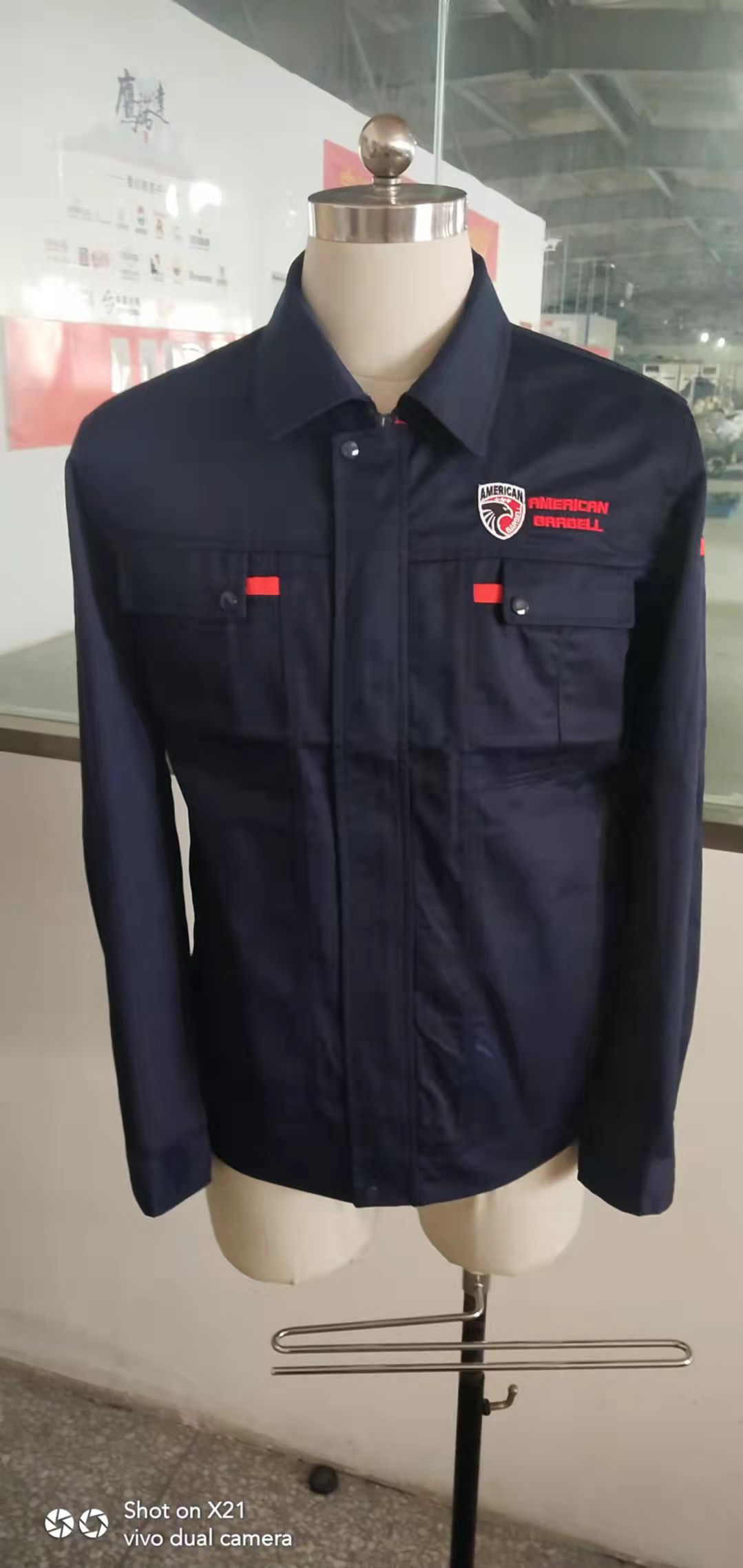 此款就是我们的销售冠军款,客户的好评率也是比较高的一款,目前通用的各个行业的。材质是含棉量80棉的环保的面料。藏青色为主色,橘红色为辅,左胸刺绣LOGO,南通鑫锐工作服就诞生了。面料真正的做到不掉色,不缩水,不起球。