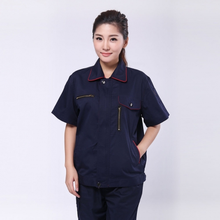 藏青拼大红全棉拼涤棉细斜纹涤棉工作服AD103-DM