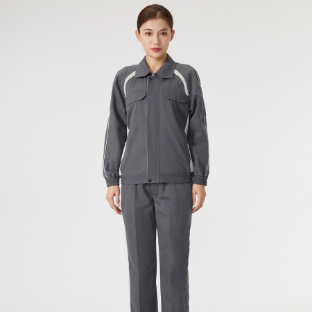 苏州鹰诺服装:浅灰拼艳蓝色工作服AC2204-4