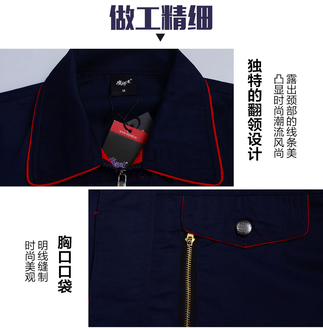 藏青拼大红杭州工作服AC099-QX
