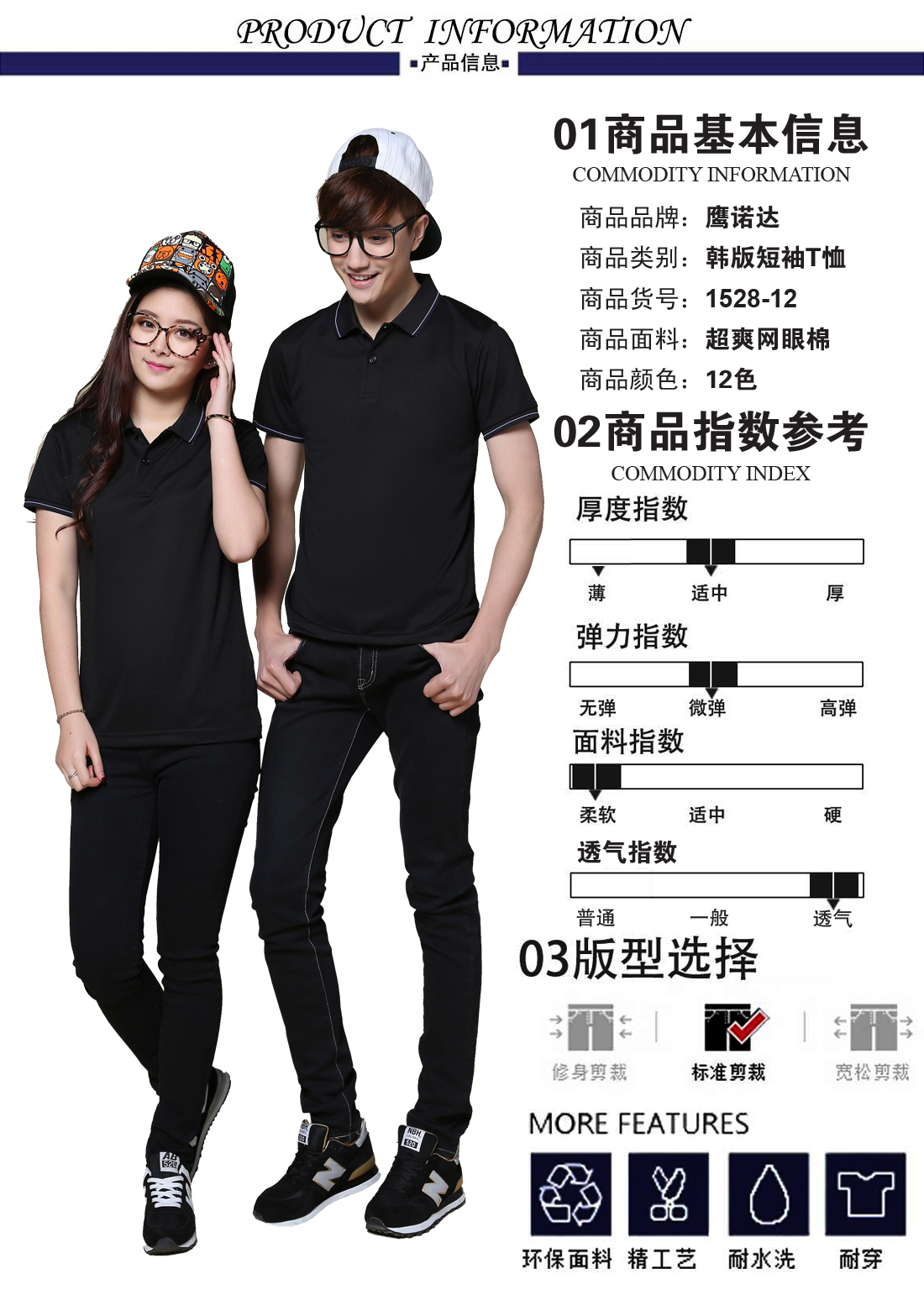游客于 2017-06-19 14:45:52 发表苏州鹰诺服装:黑色提花翻领超爽网眼棉T恤衫ID1528-12