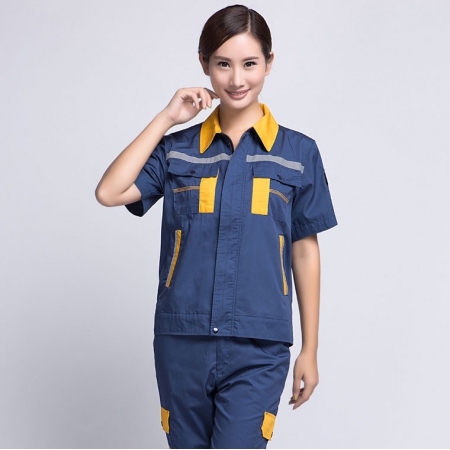 灰色拼藏青夏季工作服AD089