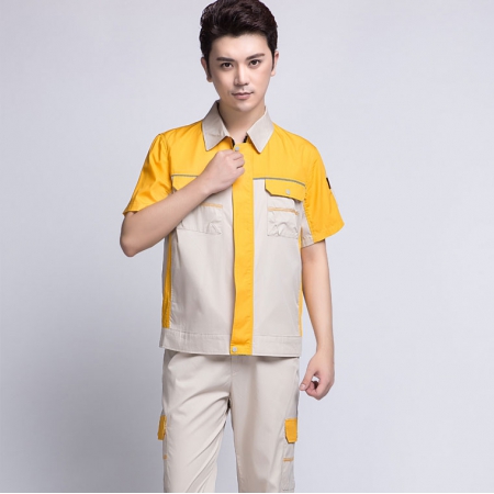 苏州鹰诺服装: 米色拼兰色工作服AC087