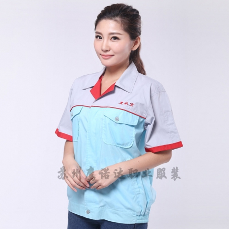 苏州鹰诺服装:红色拼藏青工作服AC13-2