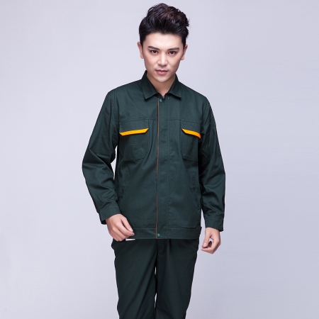 苏州鹰诺服装:墨绿拼黄色夏季工作服AD08-3