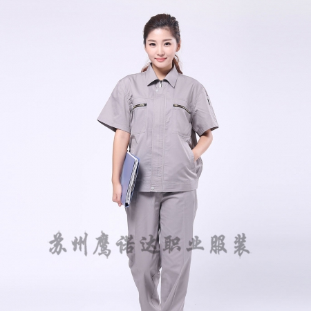 苏州鹰诺服装:浅灰拼绿色全棉工作服AC121-CQ
