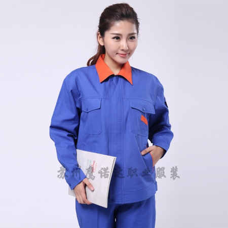 苏州鹰诺服装:深蓝配桔红春秋工作服AC069