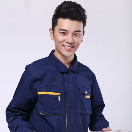 卡其拼藏青涤棉纱卡长袖工衣AC109