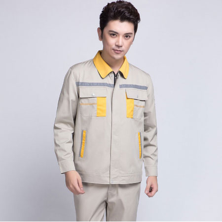 苏州鹰诺服装:米色拼黄工作服AC08-1