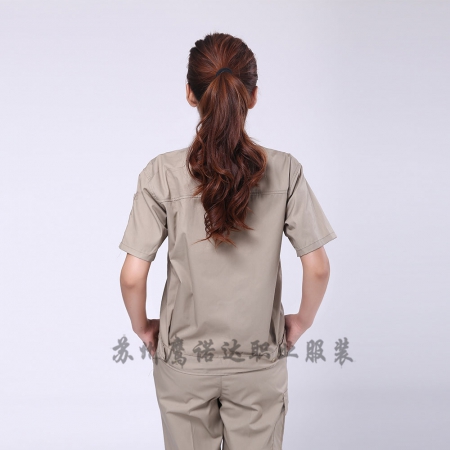 苏州鹰诺服装:米色拼黄色夏季工作服AD09-1
