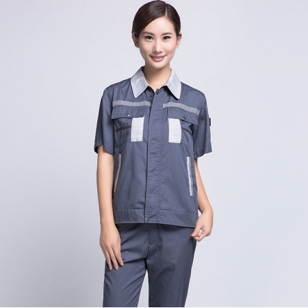 苏州鹰诺服装:清灰拼银灰全棉夏季工作服AD06-2