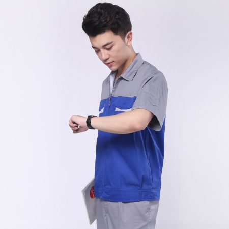 苏州鹰诺服装:清灰拼银灰全棉夏季工作服AD06-2