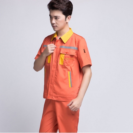 苏州鹰诺服装:橘黄拼黄色短袖工作服AD09-5