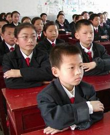 50年代,随着新中国的成立,入了少先队的学生穿白衬衫,男生蓝裤子女生蓝裙子,看上去很整齐。