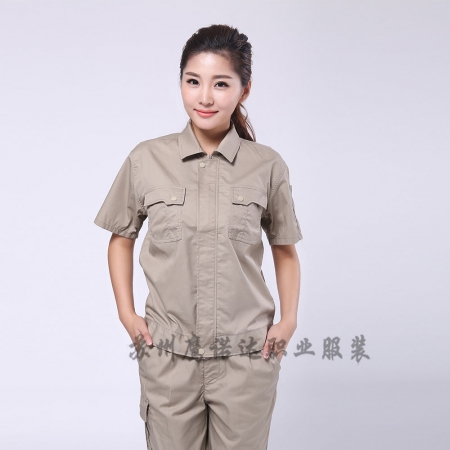 苏州鹰诺服装:黄拼驼色工作服AC20-4