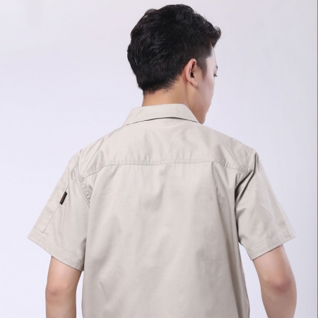 苏州鹰诺服装:卡其拼藏青涤棉纱卡春秋工衣AC109