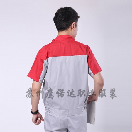 苏州鹰诺服装:大红配浅灰春秋工作服AC078