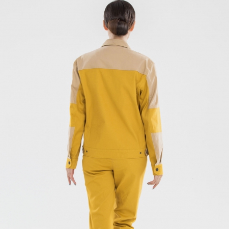 苏州鹰诺服装:黄拼驼色工作服AC20-4