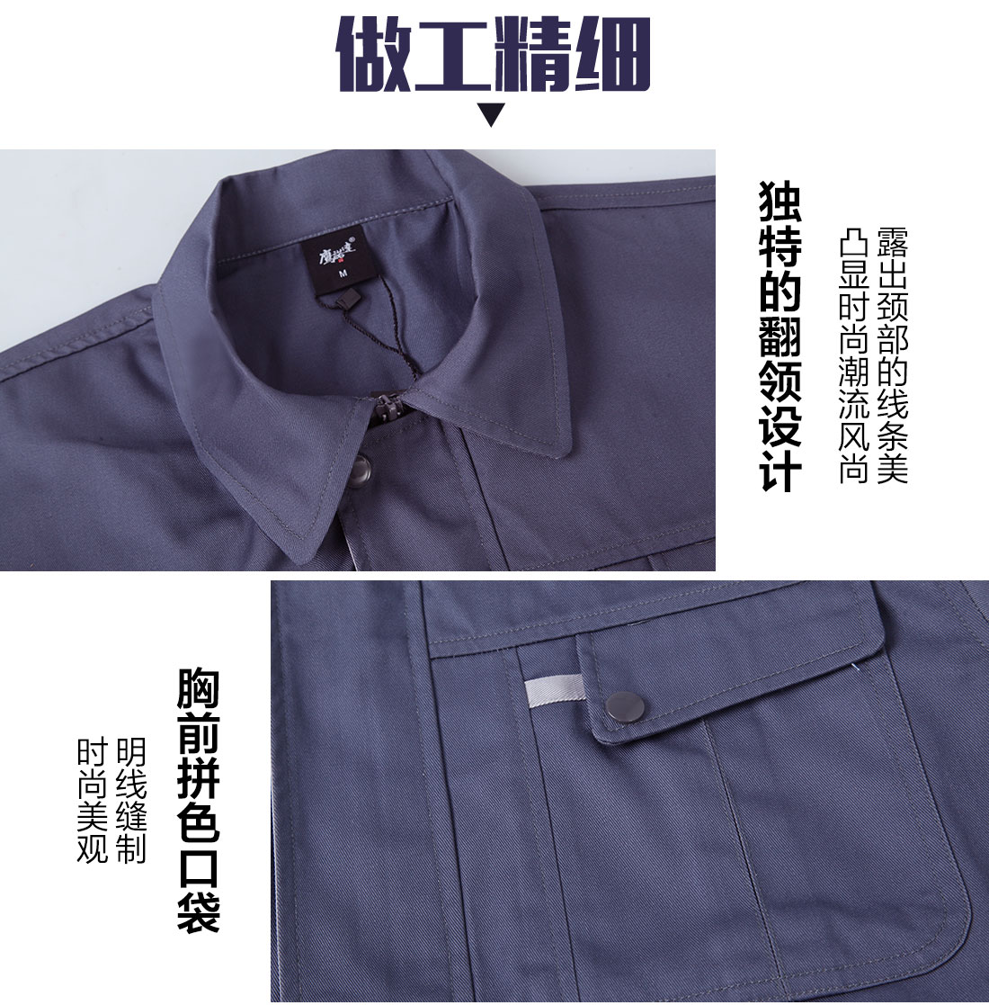 游客于 2017-08-28 08:48:19 发表深灰配浅灰涤棉纱卡耐磨工作服套装AC077