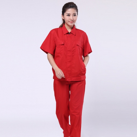 苏州鹰诺服装:红色拼藏青工作服AC13-2