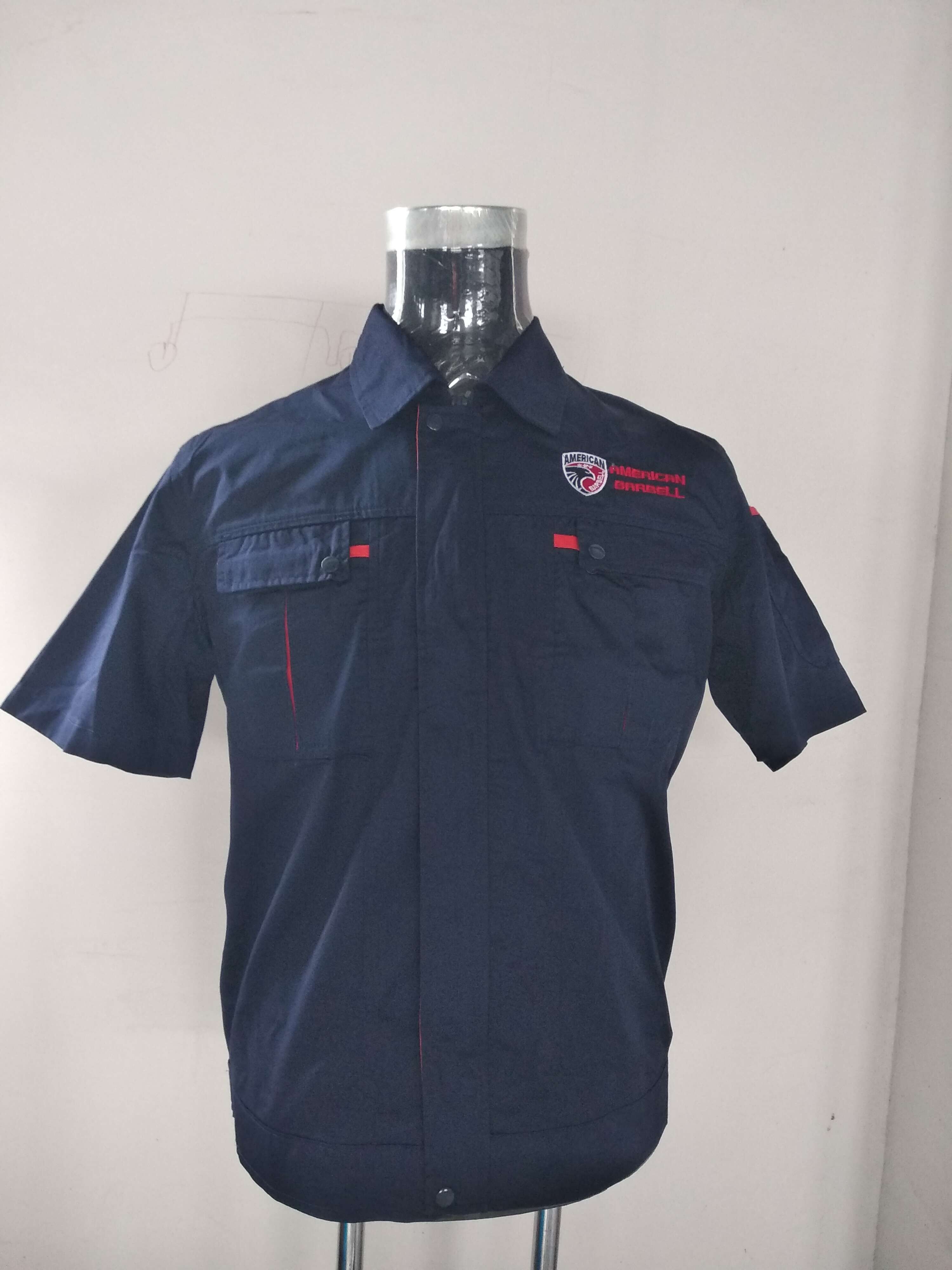 此款就是我们的销售冠军款,客户的好评率也是比较高的一款,目前通用的各个行业的。材质是含棉量80棉的环保的面料。藏青色为主色,橘红色为辅,左胸刺绣LOGO,南通鑫锐工作服就诞生了。面料真正的做到不掉色,不缩水,不起球。