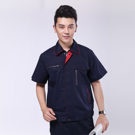 藏青拼大红全棉拼涤棉细斜纹涤棉工作服AD103-DM