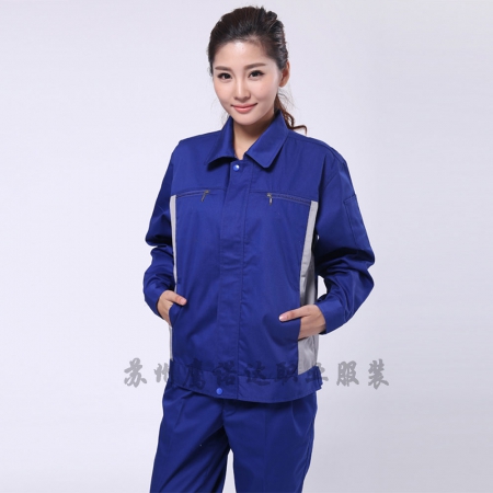 苏州鹰诺服装:艳蓝配浅灰涤棉纱卡加工行业工作服AC081-SC