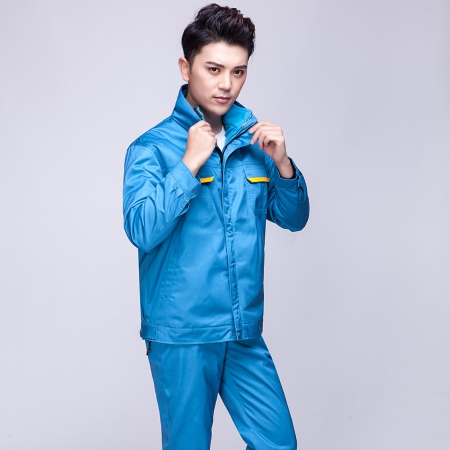 苏州鹰诺服装:艳蓝配浅灰涤棉纱卡冬季工作服AC072-DJ