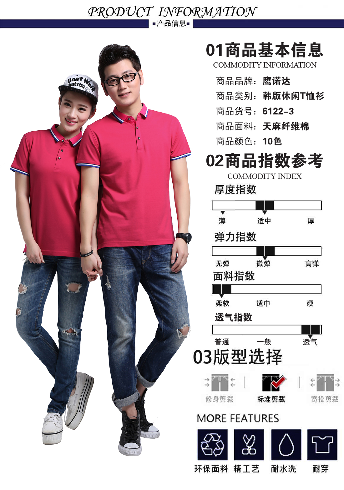 梅红电脑提花领天麻纤维棉Polo衫ID6122-3