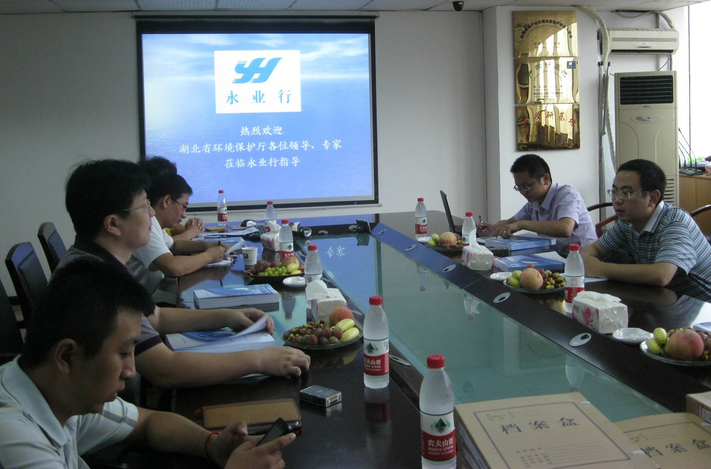8月28日,湖北省环境保护厅赵佳科长、湖北省环境科学研究院凌海波副所长一行来永业行检查指导工作。 永业行副总裁高军,环评部负责人柯艳、助理总经理张琴、经理杨金霞及注册环评工程师,技术部助理总经理汪蓓蓓等热情接待了赵科长一行。环评部负责人柯艳简单介绍了永业行的环评资质、技术管理和业务发展等情况,并逐一解答了赵科长和凌所长提出的问题。经查阅档案资料、检查办公环境及相关仪器设备、审查环评报告技术质量并询问相关注册环评工程师,检查组认为永业行具备扩大环评业务范围的能力。结合省内部分环评机构及永业行的环评工作,检查组还提出了一些宝贵意见和建议。