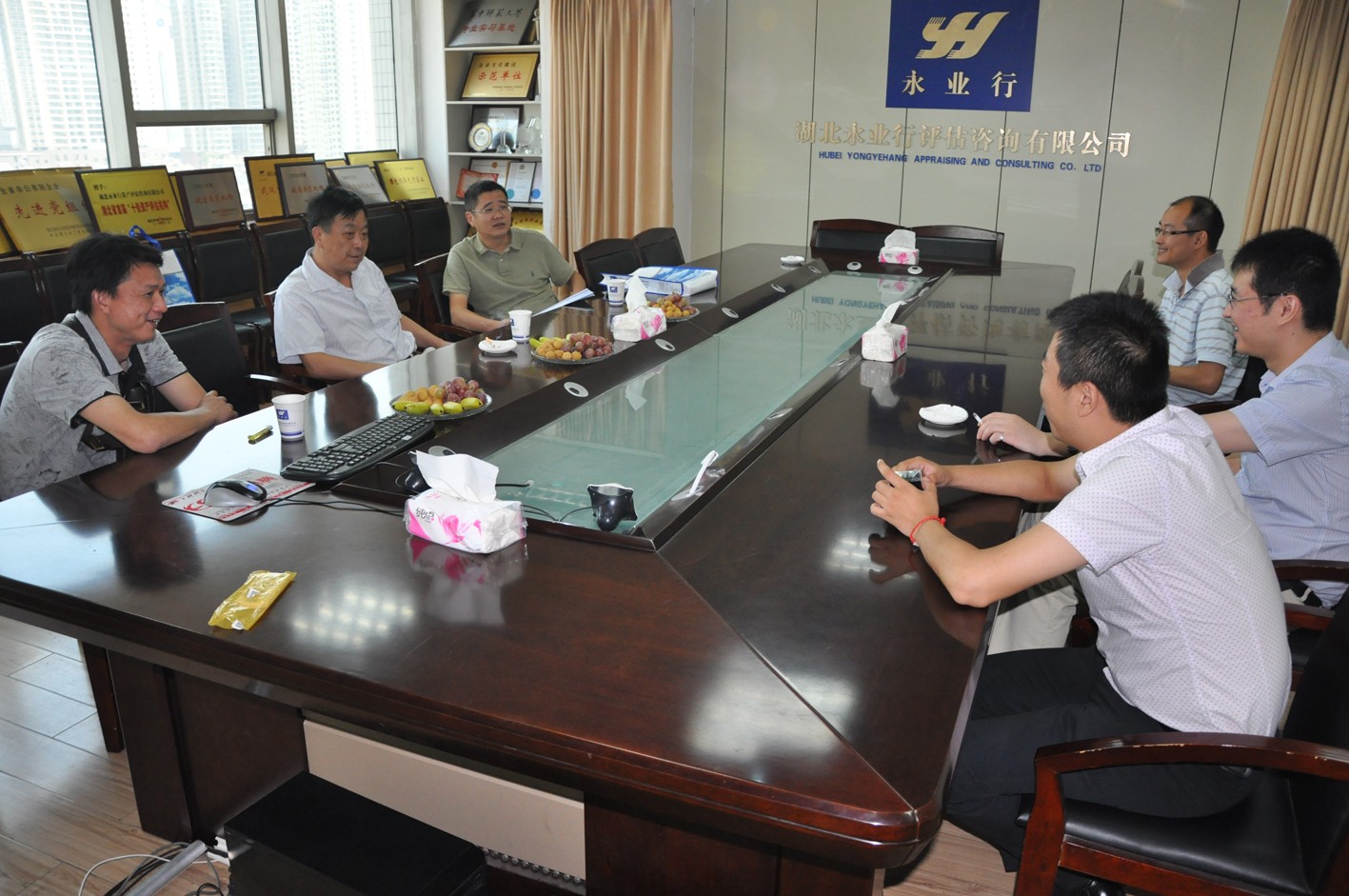 8月20日,湖北省政协副主席李宗柏率队来永业行调研并指导工作。 陪同调研的有:省政协常委、省政协委员工作委员会主任沈昌发,省政协委员、省政协文史和学习委员会主任祝新铭,省政协委员、省政协社会和法制委员会专职副主任姚永宁及副主任黄佑安,省政协委员、建纬(武汉)律师事务所主任李犁,省政协委员、武汉华南置业集团总经理赵永久,省政协社会和法制委员会办公室主任向东、副调研员谢燕子、主任科员许静等。永业行总裁潘世炳、副总裁高军、综合部高级经理丁飞华等热情接待了他们。潘总介绍了永业行的基本情况、发展现状及战略规划等。大家就咨询评估国际论坛、驰名商标申报等内容进行了充分交流。李主席等对永业行