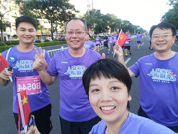 为庆祝建党100周年,丰富人民群众文化体育生活,6月20日,以“活力定安 幸福奔跑”为主题的2021海南定安幸福跑活动在定安县政府前举行。永业行粤海区总经理周攀、综合咨询部负责人孙小丽、自然资源事务部负责人张健携粤海区部分员工及家属参加5公里幸福跑项目。 本次活动分为10公里竞速跑和5公里欢乐跑两个项目,每个项目分男子组和女子组,活动采取网络报名的方式,吸引了来自国内、省内和本地的3500名跑步爱好者。 海南省定安县县委书记刘峰松与永业行参赛队员 当天上午,定安县委县政府四套班子领导参加起跑仪式,为幸福跑