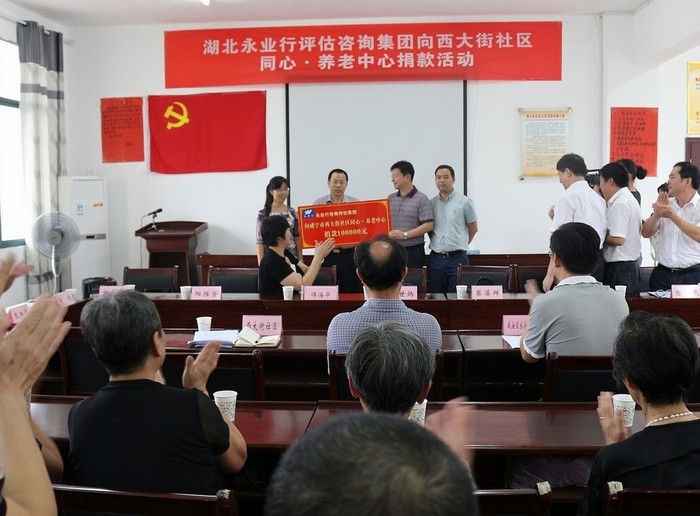 2014年8月26日,永业行向咸宁市西大街社区同心·养老中心进行捐赠