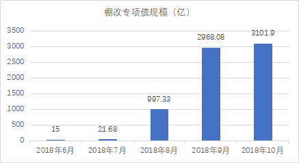 Wind数据显示,今年自28号文以来,全国棚改专项债的发行规模累计已突破3100亿,发行高峰集中在8月、9月,净发行量分别达到975亿、1970亿(截至10月专项债新增额度基本用尽,因此11月无棚改专项债发行).2018年3月,财预〔2018〕28号文发布,目的是以政府显性债务取代政府隐性债务,但并未硬性要求以棚改专项债完全取代棚改贷款,这与之前出台的土储、收费公路专项债有所不同,后两者直接堵死土储及收费公路贷款模式,而28号文提出“坚决遏制地方政府隐性债务增量,有序推进试点发行地方政府棚户区改造专项债券工作”,表明棚改专项债设计目的之一即为遏制地方政府隐性债务增量。