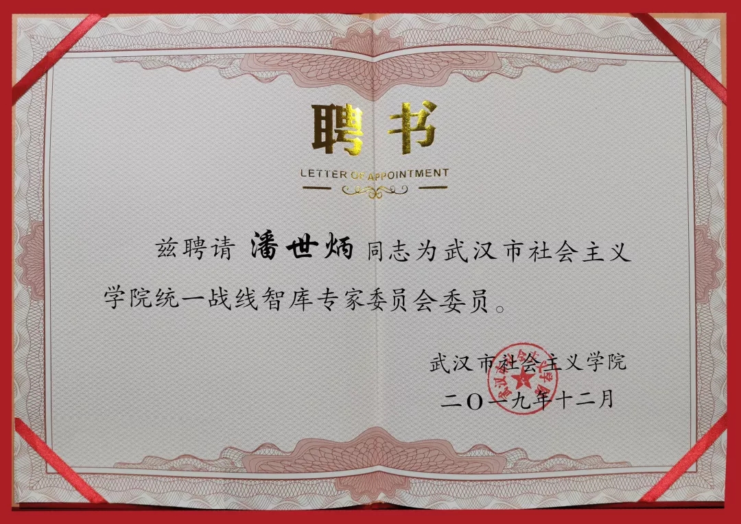 12月17日,武汉市社会主义学院举行统一战线智库成立大会。省政协委员、省政府参事、省房协会长、永业行董事长兼总裁潘世炳等29位来自省部级高校、企事业单位的专家学者获聘为智库专家委员会首批委员。