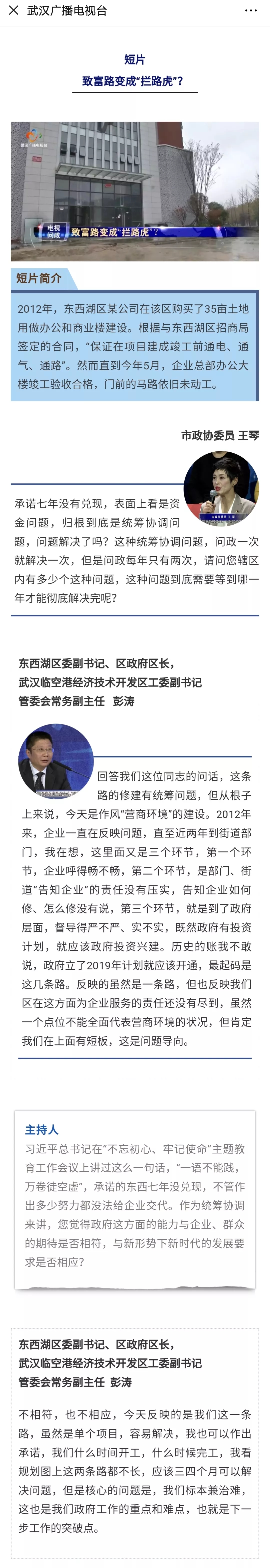 永业行王琴参加武汉广播电视台电视问政节目