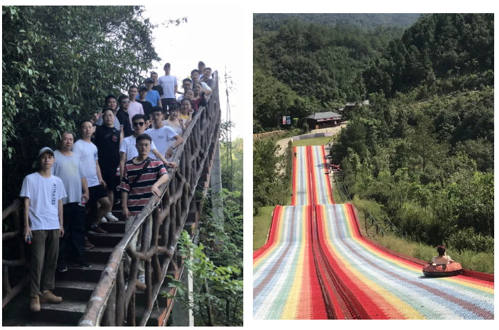 第二天上午,小伙伴集体游玩柃密小镇景区的、参与体验了“9D玻璃桥、七彩滑道、卡丁车”等景点游乐设施,在大自然中感受惊险与刺激,在历时四个小时的游园中,大家互帮互助,加油鼓劲,锻炼了员工直面恐惧、勇于尝试的心理素质。