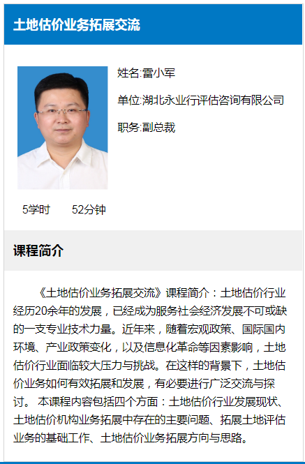 应湖北省土地估价与登记代理协会邀请,由永业行副总裁雷小军、资产评估部总经理刘勋涛、不动产事业群常务副总经理郭华组成的专业讲师团队,自2020年11月10日起在湖北省土地估价与登记代理协会官网上对全省估价师开展线上培训。