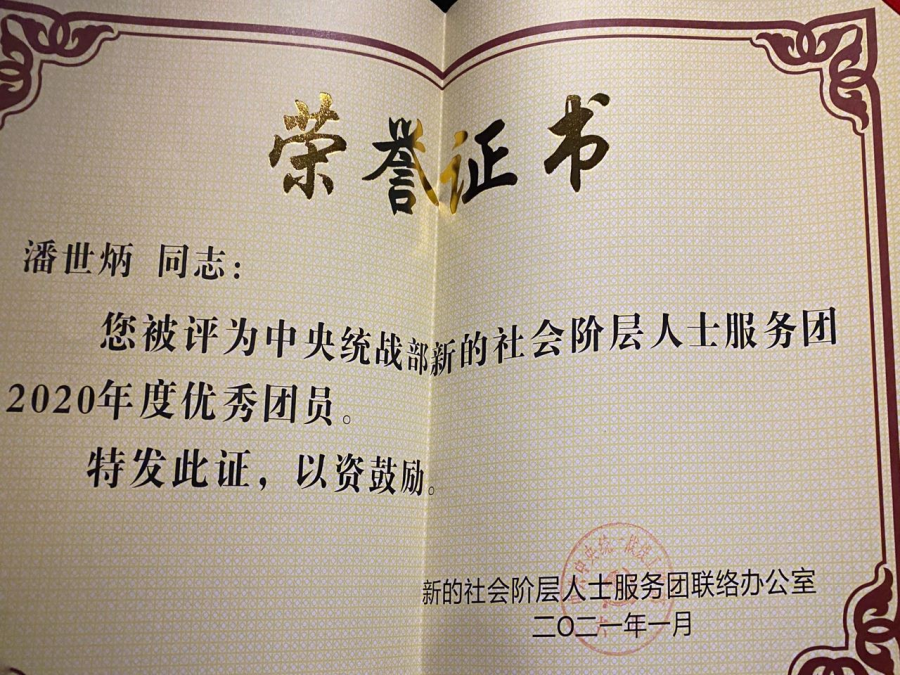2021年1月14日,中央统战部在线上线下召开新的社会阶层人士服务团2020年度工作会议。省政协委员、永业行董事长潘世炳作为六分团成员参加会议,并荣获“中央统战部新的社会阶层人士服务团2020年度优秀团员”称号。