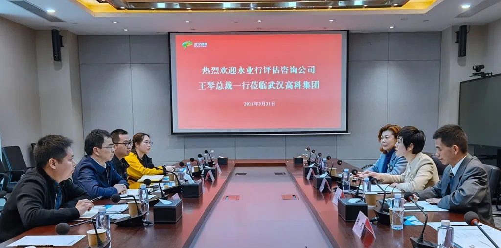 2021年3月31日,永业行轮值总裁王琴率队赴武汉高科国有控股集团有限公司(下称“武汉高科集团”)开展业务交流。永业行资产与财税咨询事业部总经理刘勋涛、常务副总经理杨奕参加交流。