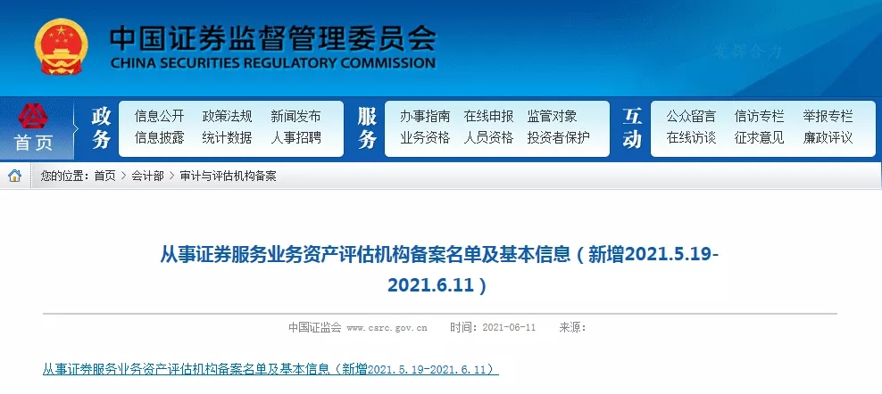 2021年6月11日,中国证券监督管理委员会官网公布“从事证券服务业务资产评估机构备案名单及基本信息”,湖北永业行资产评估咨询有限公司位列其中,标志着永业行完成证券服务业务资产评估机构资质备案。