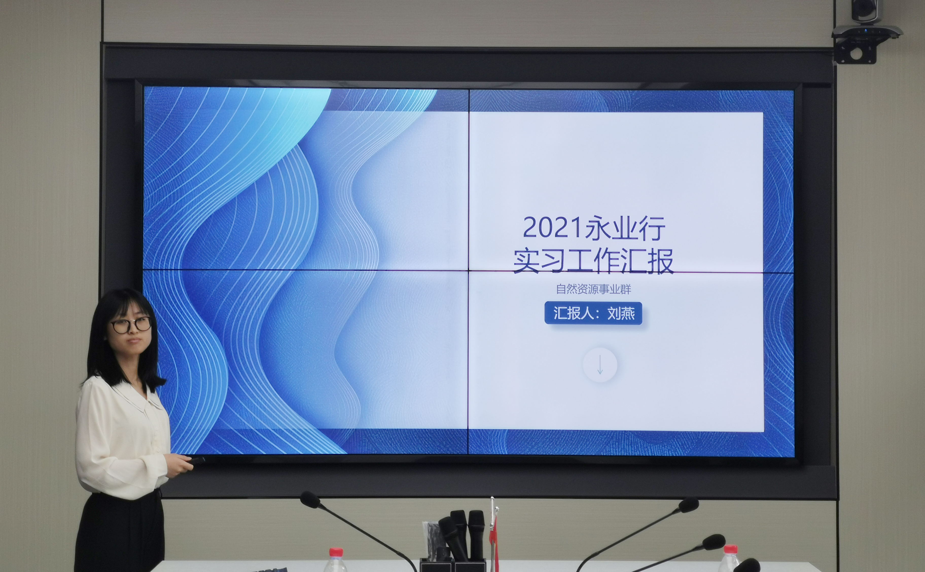 13名在永业行自然资源事业群和不动产事业群暑期实习学生均全程旁听座谈会,2名实习生代表从实习部门、工作内容、个人成长等方面进行了实习情况汇报。