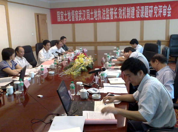 该课题评审会在武汉市滨湖大厦召开。参加评审的领导和专家还有国家土地督察武汉局局长王广华,副局长唐世力,调研处处长石一连、调研员陈汉江、主任科员刘金华;省国土资源厅党组成员执法监察总队总队长李维学、执法监察处处长万寿雄、副调研员吴鄂阳;湖北省土地勘测规划院院长张安心;荆州市国土资源局副局长胡明清;华中农业大学王秀兰副教授等。