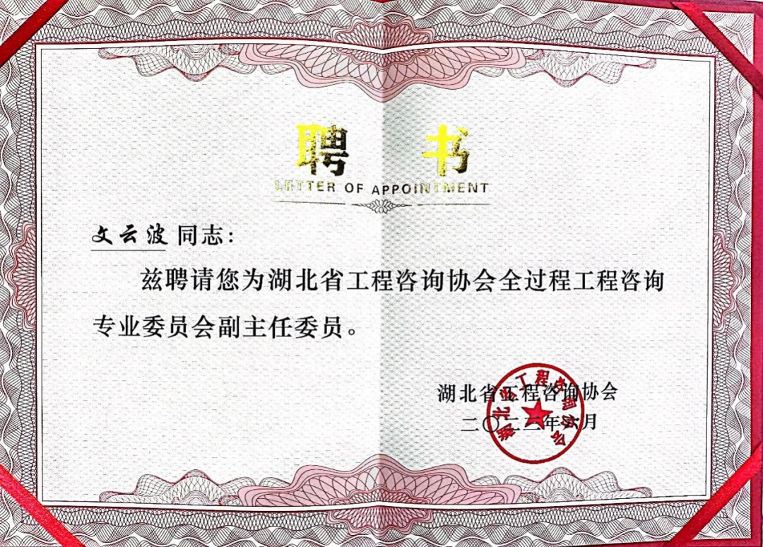 6月30日,湖北省工程咨询协会全过程工程咨询专业委员会(以下简称“全咨专委会”)成立大会暨第一次全体会议在武汉召开。湖北省工程咨询协会会长严云成主持全咨专委会成立大会、协会副会长蔡国沛主持全咨专委会第一次全体会议。文云波当选全咨专委会副主任委员。