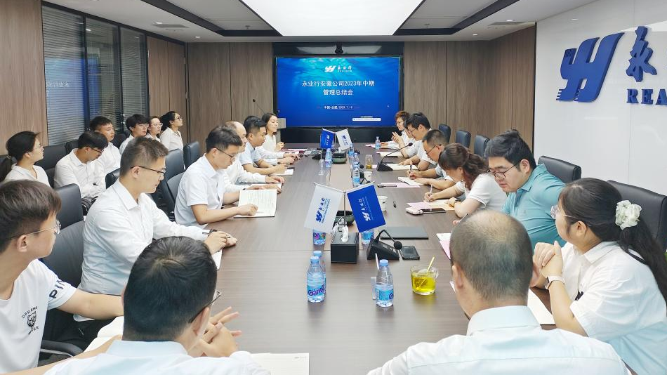 7月19日,永业行安徽公司(以下简称“安徽公司”)召开2023年中期管理总结会,永业行副总裁金建华、技术中心总经理刘亚玲出席会议。总部相关部门代表及安徽公司全体员工近50人通过线上和线下形式参加会议。安徽公司总经理徐山柱主持会议。