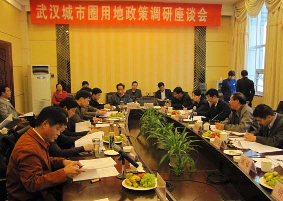 本次调研采取座谈会与现场踏勘相结合的方式,围绕武汉市城市圈内的跨区域增减挂钩、耕地圈内占补平衡、基本农田圈内统一补划、圈内一体化国土规划、圈内统一调剂建设用地指标、差别化建设用地指标安排、盘活农村集体建设用地等问题,广泛听取了当地市委、市政府、市国土局、市发改委、市环保局、市农业局、市交通局、市水利局、市统计局等相关部门和大型企业的意见与建议。调研组一行还在当地政府及相关部门的陪同下,冒着严寒天气赴孝感市南大市场实地调研农副产品集散市场的用地情况、赴仙桃市张沟镇庆丰村实地调研仙洪实验区新农村建设与土地综合整治情况、赴潜江市金澳科技(湖北)化工有限公司、潜江永安药业股份有限公司等大型化工企业实地调研增强武汉市远程辐射功能的企业用地情况、赴大冶市大箕铺镇柳林土地复垦项目实地调研资源枯竭城市的废弃矿复垦情况。