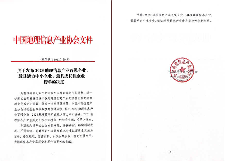 近日,中国地理信息产业协会发布2023地理信息产业百强企业、2023地理信息产业最具活力中小企业、2023地理信息产业最具成长性企业榜单。通过自主申报和层层审核,永业行旗下武汉永业赛博能规划勘测有限公司(下称“永业赛博能”)上榜“中国地理信息产业最具成长性百强”。